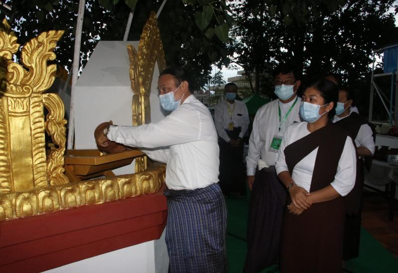နေပြည်တော်ကောင်စီနယ်မြေ၊ ဇမ္ဗူသီရိမြို့နယ်ရှိ ဓာတုစယဓာတ်ပေါင်းစုစေတီ တော်မြတ်ကြီး ပရဝုဏ်အတွင်း အရှေ့အရပ်ရှိ မဟာဗောဓိညောင်ပင်တော်အား (၁၁)ကြိမ် မြောက် ကဆုန်ညောင်ရေ သွန်းလောင်းပူဇော်ခြင်း မင်္ဂလာအခမ်းအနားနှင့် အကြိမ် (၄၀)မြောက် အသံမစဲမဟာပဌာန်း ရွတ်ဖတ်ပူဇော်ပွဲ အောင်ပွဲမင်္ဂလာ အခမ်းအနားကို ယနေ့နံနက်ပိုင်းက စေတီတော်မြတ်ကြီး ပရဝုဏ်အတွင်း၌ ကျင်းပသည်။