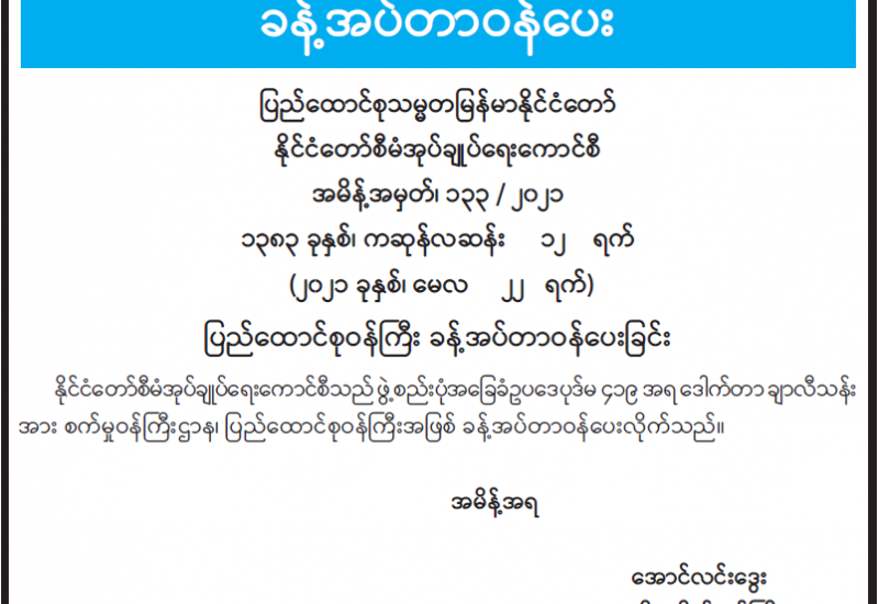 ရခိုင်ပြည်နယ်အတွင်း ၂၀၁၇ ခုနှစ်တွင် ဖြစ်ပွားခဲ့သည့် အကြမ်းဖက်ဖြစ်စဉ်များကြောင့် တစ်ဖက်နိုင်ငံသို့ နေရပ်စွန့်ခွာသူများကို ပြန်လည်လက်ခံရေးအတွက် ၂၀၁၇ ခုနှစ် နိုဝင်ဘာလ (၂၃)ရက်တွင် မြန်မာနိုင်ငံနှင့် ဘင်္ဂလားဒေ့ရှ်နိုင်ငံတို့အကြား ရခိုင်ပြည်နယ်မှ နေရပ်စွန့်ခွာသူများ ပြန်လည်လက်ခံရေး သဘောတူစာချုပ်ကို နှစ်နိုင်ငံကိုယ်စားလှယ်များ ချုပ်ဆိုခဲ့ကြသည်။