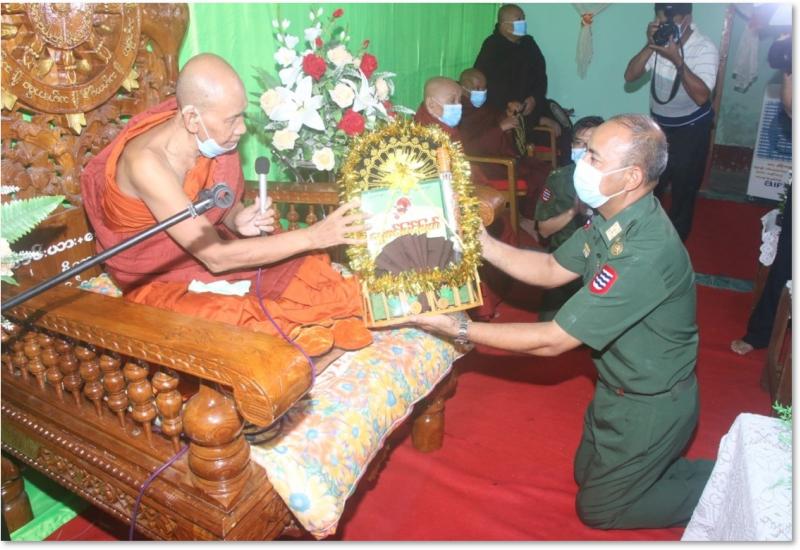 တပ်မတော် (ကြည်း၊ ရေ၊ လေ) အရာရှိ၊ စစ်သည်၊ အရာထမ်း၊ အမှုထမ်းများက တိုင်းစစ်ဌာနချုပ်များအလိုက် မြို့နယ်အသီးသီးရှိ ဘုန်းတော်ကြီးကျောင်းများ၊ သာသနာ့ နွယ်ဝင် သီလရှင်ကျောင်းများနှင့် ဘာသာရေး ကျောင်းများ တွင် ဆွမ်းဆန်တော်၊ ဆီ၊ ဆား၊ ပဲ အမယ်လေးမျိုးနှင့် လှူဖွယ်ပစ္စည်းများလှူဒါန်းခြင်း၊ နေ့ဆွမ်းများ ဆက်ကပ် လှူဒါန်းခြင်းနှင့် ကျန်းမာရေးစစ်ဆေးပေးခြင်းများကို ဆောင်ရွက်လျက်ရှိသည်။