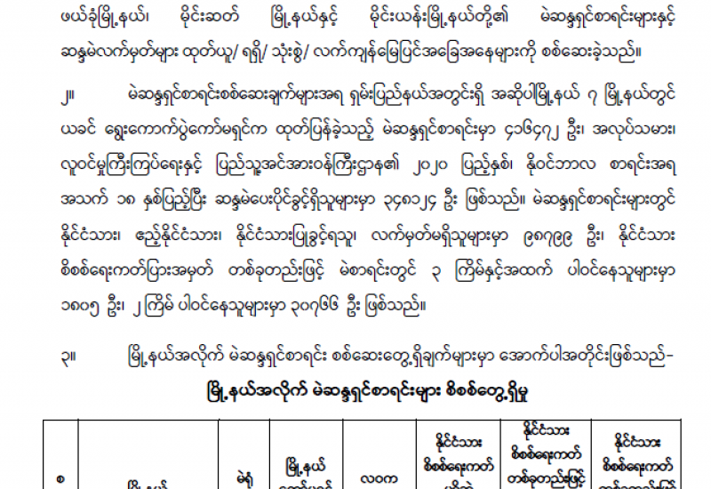 ၁။ ပြည်ထောင်စုရွေးကောက်ပွဲကော်မရှင်သည် ၂၀၂၀ ပြည့်နှစ် နိုဝင်ဘာလ ၈ ရက်နေ့တွင် ကျင်းပ ပြုလုပ်သည့် ပါတီစုံဒီမိုကရေစီအထွေထွေရွေးကောက်ပွဲနှင့်စပ်လျဉ်း၍ စစ်ကိုင်းတိုင်းဒေသကြီး၊ ရွှေဘိုမြို့နယ်၊ ခင်ဦးမြို့နယ်၊ ဒီပဲယင်းမြို့နယ်၊ တမူးမြို့နယ်၊ ကောလင်းမြို့နယ်၊ ကလေးဝမြို့နယ်နှင့် မင်းကင်းမြို့နယ် တို့၏ မဲဆန္ဒရှင်စာရင်းများနှင့် ဆန္ဒမဲလက်မှတ်များ ထုတ်ယူ ရရှိ/ သုံးစွဲ/ လက်ကျန် မြေပြင်အခြေအနေ များကို စစ်ဆေးခဲ့သည်။