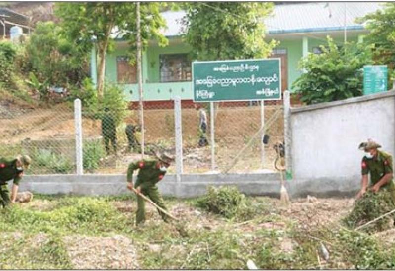 ၂၀၂၁-၂၀၂၂ ပညာသင်နှစ် ကျောင်းဖွင့်ရာသီတွင် ကျောင်းသား ကျောင်းသူများ အဆင်ပြေ ချောမွေ့စွာ ပညာသင်ကြားနိုင်ရေးနှင့် ကျောင်းပတ်ဝန်းကျင်သန့်ရှင်း သာယာလှပရေးအတွက် ပြည်နယ်နှင့် တိုင်းဒေသကြီးအသီးသီးရှိ အခြေခံပညာကျောင်းများ၌ တိုင်းစစ်ဌာန ချုပ်အလိုက် နယ်မြေခံတပ်မတော်သားများနှင့် မိသားစုများ၊ မြန်မာနိုင်ငံရဲတပ်ဖွဲ့ဝင်များ၊ မီးသတ်တပ်ဖွဲ့ ဝင်များနှင့် ဌာနဆိုင်ရာဝန်ထမ်းများက ကျောင်းသန့်ရှင်းရေးလုပ်ငန်းများ စုပေါင်းဆောင်ရွက် ပေးလျက်ရှိသည်။