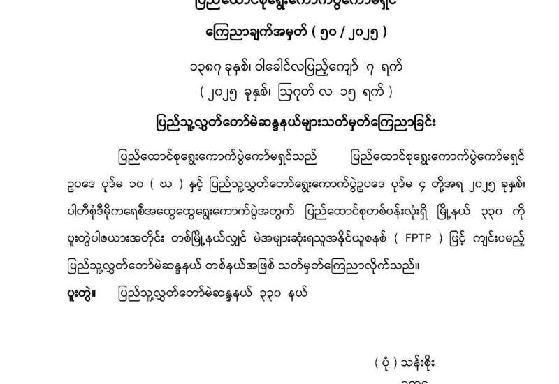 တိုင်းဒေသကြီးလွှတ်တော် သို့မဟုတ် ပြည်နယ်လွှတ်တော် တိုင်းရင်းသားလူမျိုးမဲဆန္ဒနယ်များ သတ်မှတ်ကြေညာခြင်း