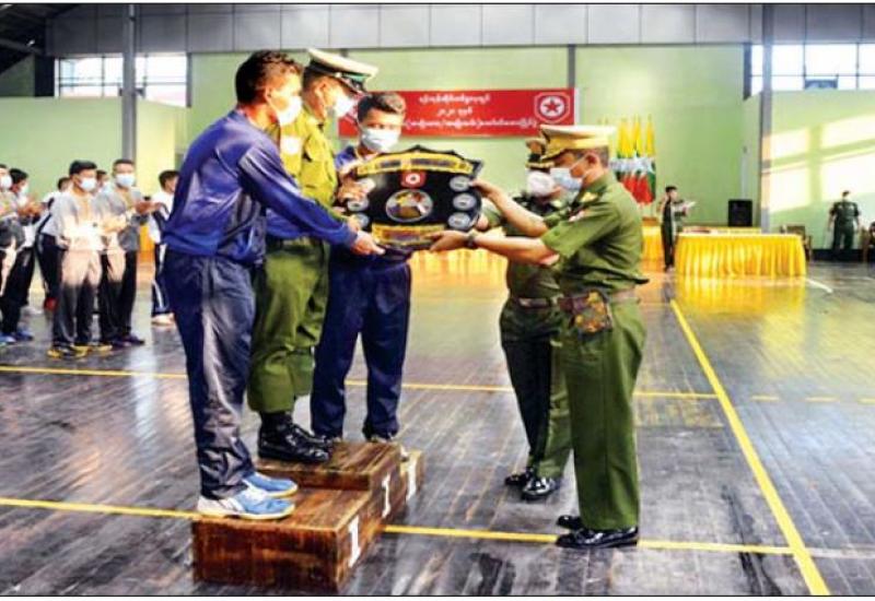 ရန်ကုန်တိုင်းစစ်ဌာနချုပ်၏ ၂၀၂၁ ခုနှစ် တိုင်းမှူးဒိုင်း (အမျိုးသား၊ အမျိုးသမီး) ဘော်လီဘောပြိုင်ပွဲ ဗိုလ်လုပွဲနှင့် ဆုပေးပွဲကို ယနေ့ မွန်းလွဲပိုင်းတွင် ရန်ကုန်တိုင်း ဒေသကြီး မင်္ဂလာဒုံမြို့နယ်ရှိ တပ်မတော် ဆေးတက္ကသိုလ် အားကစားခန်းမ၌ ပြုလုပ်ရာ တိုင်းမှူး ဗိုလ်ချုပ် ညွန့်ဝင်းဆွေနှင့် အရာရှိ၊ စစ်သည်၊ မိသားစုများ၊ ပြိုင်ပွဲဝင်အသင်းများနှင့် ဒိုင်အဖွဲ့ ဝင်များ တက်ရောက်ကြသည်။
