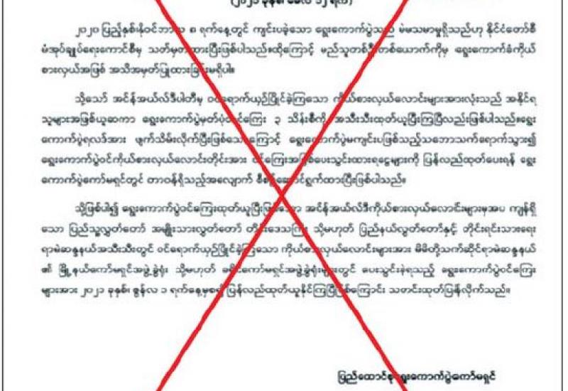 ၁။ လူမှုကွန်ရက်စာမျက်နှာ (Facebook) ၌ ၂၀၂၀ ပြည့်နှစ် အထွေထွေ ရွေးကောက်ပွဲတွင် ဝင်ရောက်ယှဉ်ပြိုင်ခဲ့ကြသည့် လွှတ်တော် ကိုယ်စားလှယ်လောင်း အားလုံးအနေဖြင့် ရွေးကောက်ပွဲ မှတ်ပုံတင်ကြေး (ရွေးကောက်ပွဲဝင်ခွင့်အာမခံငွေ) ပေးသွင်းခဲ့သည့် ငွေကျပ် သုံးသိန်းကို ဇွန်လ ၁ ရက်နေ့မှစ၍ ထုတ်ယူနိုင်ပြီ ဖြစ်ကြောင်း၊ ၂၀၂၁ ခုနှစ် မေလ ၁၂ ရက်နေ့ ရက်စွဲဖြင့် ပြည်ထောင်စုရွေးကောက်ပွဲကော်မရှင်က သတင်းထုတ်ပြန်ထားသကဲ့သို့ သတင်းအမှားအား လွှင့်တင်ထားသည်ကို တွေ့ရှိရပါသည်။