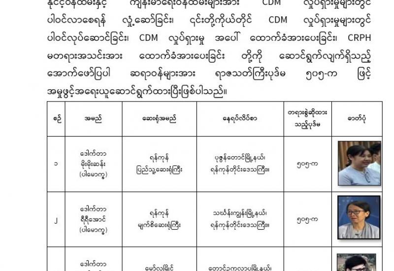 CDM လှုပ်ရှားမှုတွင် ပါဝင်ခဲ့ကြသဖြင့် အရေးယူခံခဲ့ရသည့် နိုင်ငံဝန်ထမ်းများအတွက် နိုင်ငံ့ဝန်ထမ်း ကောင်းအဖြစ် နိုင်ငံ့တာဝန်များကို ပြန်လည်ထမ်းဆောင်နိုင်ရေး စဉ်းစားသုံးသပ်ဆောင်ရွက်နိုင်ရန် အခွင့်အလမ်းပေါ်ထွက်လာပြီဖြစ်သည်။ အကြောင်းအမျိုးမျိုးကြောင့် CDM တွင် ပါဝင်ခဲ့ကြသည့် ဝန်ထမ်းများအနက် အချို့သည် နိုင်ငံ့ -ဝန်ထမ်းဥပဒေ၊ နည်းဥပဒေများနှင့် အရေးယူခံခဲ့ကြရပြီး ဝန်ထမ်းအချို့မှာမူ ရာဇဝတ်ကြောင်းအရ တရားစွဲဆိုခံထားကြရခြင်းဖြစ်သည်။ ၎င်းတို့ ကျူးလွန် ခဲ့သည့် ဥဒေနှင့်ငြိစွန်းသောအပြုအမူများအလိုက် ဥပဒေနှင့်အညီ အရေးယူခံကြရခြင်းဖြစ်သည်။