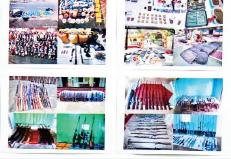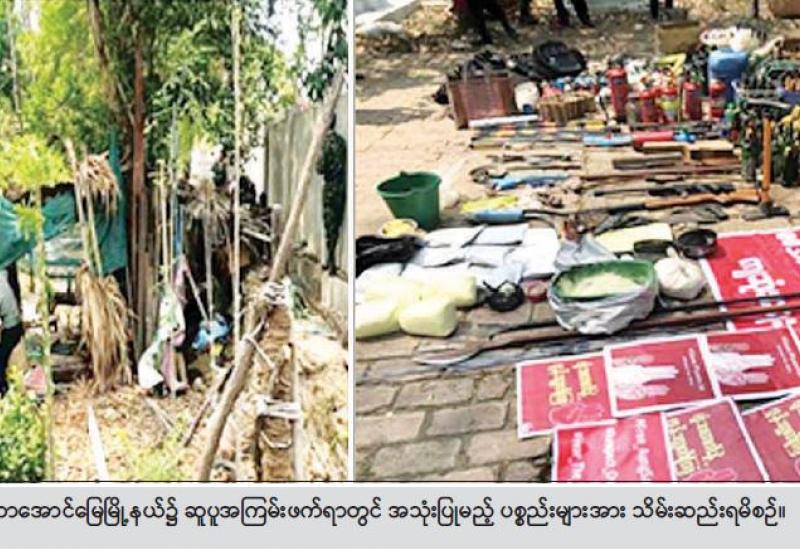 ဆူပူအကြမ်းဖက်သူများ အသုံးပြုလျက်ရှိသည့် လက်နက်များနှင့် ပစ္စည်းများ သိုဝှက်ထားမှုနှင့် ကိုင်ဆောင် မှုများကို လုံခြုံရေးတပ်ဖွဲ့ဝင်များက စစ်ဆေးရှာဖွေသတင်းထုတ် ဖမ်းဆီးထိန်းသိမ်း ခြင်းများ ဆောင်ရွက်လျက်ရှိသည်။ ။