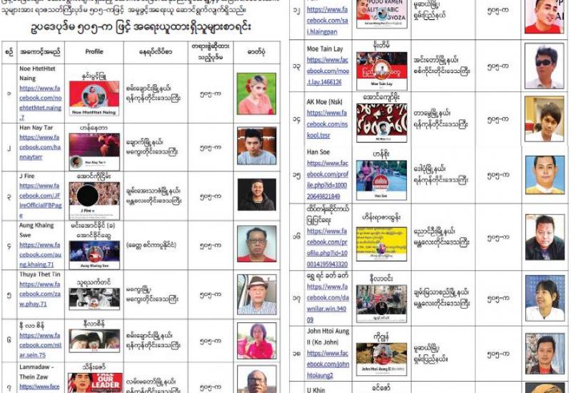 လှုမှုကွန်ရက်အားအသုံးပြု၍ နိုင်ငံတော်တည်ငြိမ်အေးချမ်းမှုကို ပျက်ပြားစေရန် ရည်ရွယ်ချက်ဖြင့် လှုံ့ဆော်သူများအား ရာဇသတ်ကြီးပုဒ်မ ၅၀၅-က ဖြင့် အမှုဖွင့် အရေးယူဆောင်ရွက်