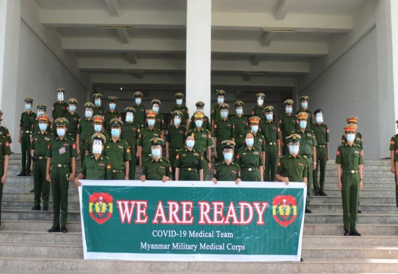 COVID-19 ရောဂါ ကာကွယ်၊ ထိန်းချုပ်ကုသရေးလုပ်ငန်းများ အရှိန်အ အဟုန်မြှင့်ဆောင်ရွက်လျက်ရှိပြီး ရန်ကုန်တိုင်းစစ်ဌာနချုပ်နယ်မြေအတွင်းရှိ ကုသရေးဆေးရုံများ၌ ကျန်းမာရေးဝန်ထမ်းများ မလုံလောက်မှုကြောင့် ထပ်မံ ဖွင့်လှစ်ထားရှိသည့် ရန်ကုန်တိုင်းဒေသကြီး၊ လှည်းကူးမြို့နယ် COVID-19 ရောဂါ ကုသရေးဌာန(ဖောင်ကြီး)တွင် တပ်မတော်မှ ပါဝင်ကူညီဆောင်ရွက်ရန် အတွက် ဆေးဝန်ထမ်းတပ်ဖွဲ့ဝင် ပါရဂူများ၊ ဆေးမှူးများ၊ သူနာပြုများ ပါဝင်သောအဖွဲ့က သွားရောက်တာဝန်ထမ်းဆောင်လျက်ရှိသည်။