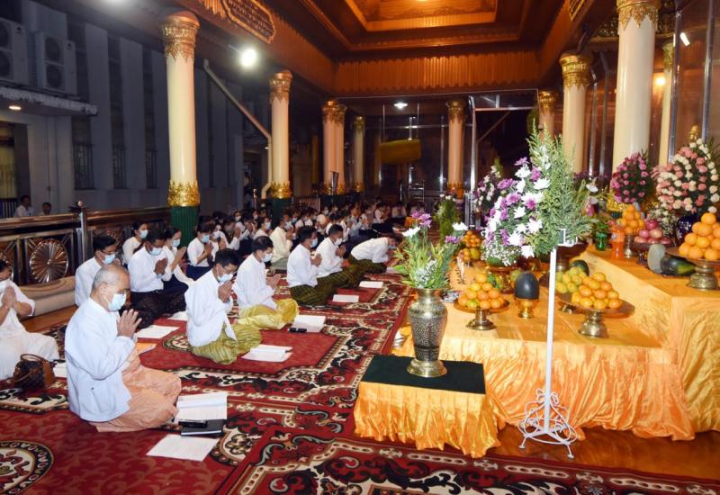 ၁၃၈၃ ခုနှစ်၊ မြန်မာ့နှစ်သစ်ကူးအခါသမယတွင် နိုင်ငံသူ နိုင်ငံသားများ ဥပဒ်ဘေးဒဏ် ဘေးရန် အန္တရာယ်ကင်းဝေးစေရန်အတွက် နိုင်ငံတော်စီမံ အုပ်ချုပ် ရေး ကောင်စီ မြန်မာ့ နှစ်သစ်ကူး အန္တရာယ်ကင်းပရိတ်တရားတော်နာ အခမ်း အနားကို ယနေ့ နံနက်ပိုင်းတွင် နေပြည်တော်ရှိ နိုင်ငံတော်စီမံအုပ်ချုပ်ရေး ကောင်စီ ဥက္ကဋ္ဌရုံး ငုရွှေဝါခန်းမ၌ ကျင်းပသည်။