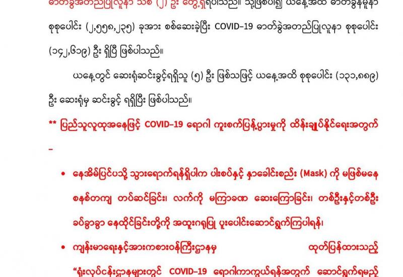နေပြည်တော်ကောင်စီနယ်မြေ၊ တပ်ကုန်းမြို့၊ စစ်ကိုင်းတိုင်းဒေသကြီး၊ ဖောင်းပြင်မြို့နယ်နှင့် ချင်းပြည်နယ်၊ ထန်တလန်မြို့၊ မန္တလေးတိုင်းဒေသကြီး၊ ရမည်းသင်းမြို့နယ်နှင့် စဉ့်ကိုင်မြို့နယ် များအတွင်းရှိ ကျေးရွာအချို့တို့၌ ဆူပူ အကြမ်းဖက်မှုတွင် အသုံးပြုသည့် လက်လုပ်သေနတ်များ ကိုင်ဆောင်နေကြောင်း သတင်းအရ အေပြီ ၁၅ ရက်နှင့် ယနေ့တို့တွင် တိုင်းစစ်ဌာနချုပ်ရှိ တပ်နယ်အသီးသီးမှ လုံခြုံရေးတပ်ဖွဲ့ဝင်များက ကျေးရွာအုပ်ချုပ်ရေးမှူးများနှင့်အတူ သွားရောက်၍ ဒေသခံ ပြည်သူများကို တရားမဝင် လက်နက်ကိုင်ဆောင်ခြင်းသည် တရားဥပဒေဖြင့် ထိရောက်စွာ အရေးယူခံရနိုင်ကြောင်း နားလည်သဘော ပေါက်အောင် ရှင်းလင်း ပြောကြား သည်။