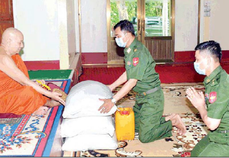 ဘုန်းတော်ကြီး ကျောင်းများ၊ သာသနာ့နွယ်ဝင် သီလရှင် ကျောင်းများနှင့် ဘာသာရေး ကျောင်းများတွင် ဆွမ်းအဆင်ပြေ စေရေးအတွက် တပ်မတော် (ကြည်း၊ ရေ၊ လေ) အရာရှိ၊ စစ်သည်၊ အရာထမ်း၊ အမှုထမ်း များက တိုင်းစစ်ဌာနချုပ်များ၊ အလိုက် မြို့နယ်အသီးသီး၌ ဆွမ်းဆန်တော်၊ ဆီ၊ ဆား၊ ပဲ အမယ်လေးမျိုးနှင့်လှူဖွယ်ပစ္စည်း များ လှူဒါန်းခြင်း၊ နေ့ဆွမ်းများ ဆက်ကပ် လှူဒါန်းခြင်းနှင့် ကျန်းမာရေး စစ်ဆေးမှုများကို ဆောင်ရွက်လျက်ရှိသည်။