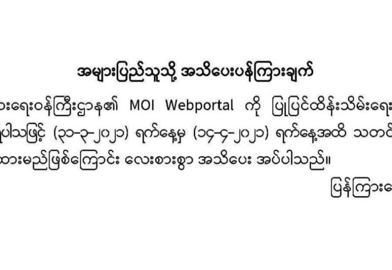 (၂၀၂၁ ခုနှစ်၊ မတ်လ (၂၈)ရက်နေ့ ညနေ(၄:၀၀)နာရီအချိန် ထုတ်ပြန်ချက်)