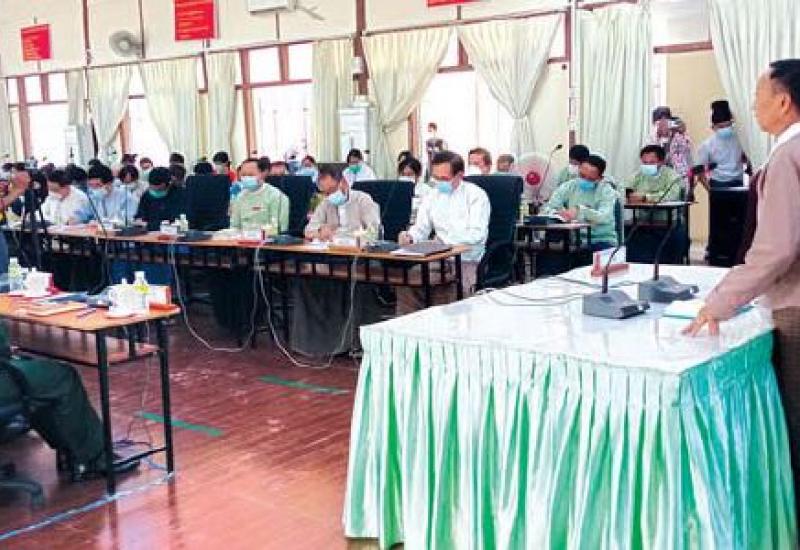 ဧရာဝတီတိုင်းဒေသကြီး စီမံအုပ်ချုပ်ရေးကောင်စီနှင့် တိုင်းဒေသကြီးအဆင့် ဌာနဆိုင်ရာများ တွေ့ဆုံသည့် လုပ်ငန်းညှိနှိုင်း အစည်းအဝေး(၂/၂၀၂၁)ကို မတ် ၁၉ ရက်က ပုသိမ်မြို့ရှိ ဧရာရွှေဝါ ခန်းမ၌ ကျင်းပသည်။
