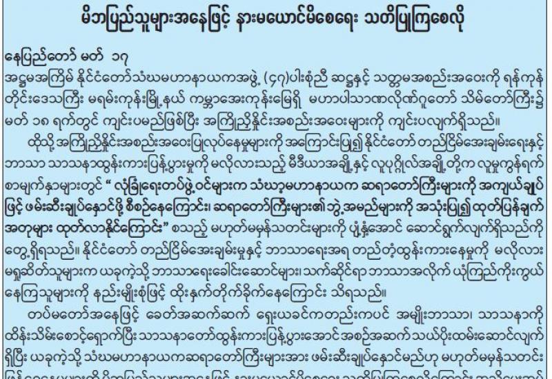 (၂၀၂၁ ခုနှစ်၊ မတ်လ (၁၇)ရက်နေ့ မွန်းလွဲ (၂:၀၀)နာရီအချိန် ထုတ်ပြန်ချက်)