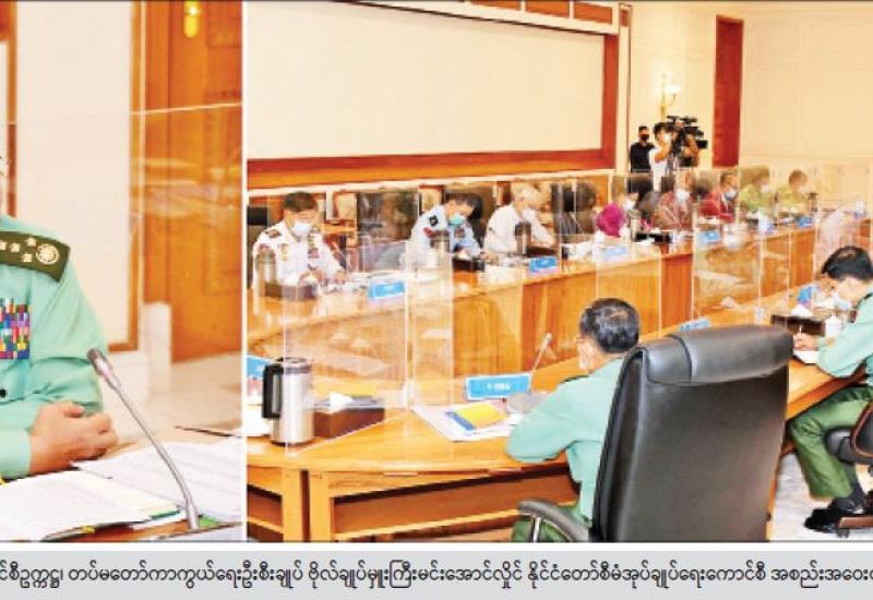 နိုင်ငံတော်စီမံအုပ်ချုပ်ရေးကောင်စီ အစည်းအဝေး(၆/၂၀၂၁)ကို ယနေ့ နံနက်ပိုင်းတွင် နေပြည်တော်ရှိ နိုင်ငံတော်စီမံအုပ်ချုပ်ရေးကောင်စီဥက္ကဋ္ဌရုံး အစည်းအဝေးခန်းမ၌ ကျင်းပရာ နိုင်ငံတော်စီမံအုပ်ချုပ်ရေးကောင်စီဥက္ကဋ္ဌ၊ တပ်မတော်ကာကွယ်ရေးဦးစီးချုပ် ဗိုလ်ချုပ်မှူးကြီး မင်းအောင်လှိုင် တက်ရောက်အမှာစကားပြောကြားသည်။