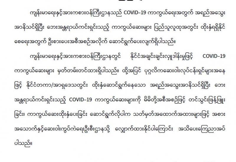 (၂၀၂၁ ခုနှစ်၊ မတ်လ (၄)ရက်နေ့ ည(၇:၀၀)နာရီအချိန် ထုတ်ပြန်ချက်)