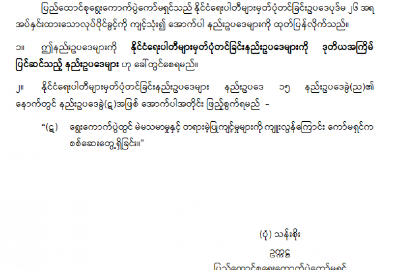 တိုင်းဒေသကြီးလွှတ်တော် သို့မဟုတ် ပြည်နယ်လွှတ်တော်ရွေးကောက်ပွဲနည်းဥပဒေများကို ထုတ်ပြန်ကြေညာခြင်း