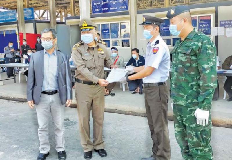 တာချီလိတ်မြို့ မြန်မာ- ထိုင်း ချစ်ကြည်ရေးတံတား အမှတ်(၂) မှတစ်ဆင့် ထိုင်းနိုင်ငံမှ လွှဲပြောင်းပေးလာသော နေရပ်ပြန်မြန်မာရွှေ့ပြောင်း အလုပ်သမားများနှင့် ပြစ်ဒဏ်စေ့ မြန်မာနိုင်ငံသားများကို ယနေ့နံနက်ပိုင်းက မြန်မာတာဝန်ရှိသူများက ပြန်လည်လက်ခံခဲ့ကြသည်။