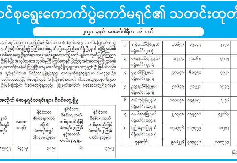 ပြည်ထောင်စုရွေးကောက်ပွဲကော်မရှင်၏ သတင်းထုတ်ပြန်ချက်