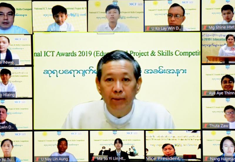 ပညာရေးဝန်ကြီးဌာနနှင့် မြန်မာနိုင်ငံ ကွန်ပျူတာအသင်းချုပ်တို့ ပူးပေါင်းကျင်းပသည့် National ICT Awards 2019 (Educational Project & Skills Competition) ဆုရပရောဂျက် များဆုချီးမြှင့်ပွဲ အခမ်းအနားကို ယနေ့နံနက် ၁၀ နာရီတွင် အွန်လိုင်းစနစ်ဖြင့် ကျင်းပသည်။