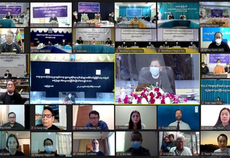 တရားဥပဒေစိုးမိုးရေးဌာနနှင့် တရားမျှတမှုဆိုင်ရာလုပ်ငန်းများ ပေါင်းစပ်ညှိနှိုင်းရေး အဖွဲ့၏ အဋ္ဌမအကြိမ်အစည်းအဝေးကို ယနေ့နံနက် ၉ နာရီခွဲတွင် ပြည်ထောင်စုရှေ့နေချုပ်ရုံး၊ အစည်းအဝေးခန်းမ၌ အွန်လိုင်းစနစ်ဖြင့် ကျင်းပသည်။