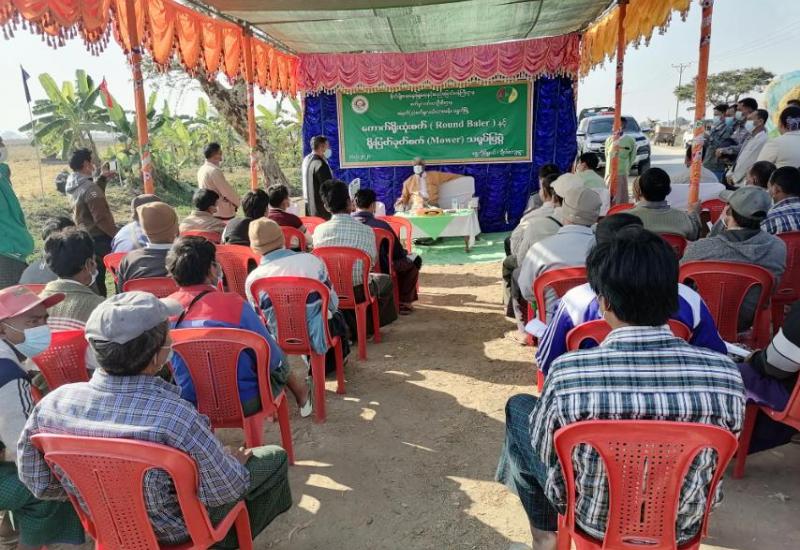 စစ်ကိုင်းတိုင်းဒေသကြီးအစိုးရအဖွဲ့ ဝန်ကြီးချုပ်ဒေါက်တာမြင့်နိုင်သည် စိုက်ပျိုးရေးမွေးမြူရေးနှင့် ဆည်မြောင်း ဝန်ကြီးဌာန လက်အောက်ရှိ စိုက်ပျိုးရေးဦးစီးဌာန၊ စက်မှုလယ်ယာဦးစီးဌာနတို့မှ တိုင်းဒေသကြီးအဆင့် ဌာနဆိုင်ရာအကြီးအကဲများနှင့်အတူ ရွှေဘိုခရိုင်/မြို့နယ် စီမံခန့်ခွဲမှုကော်မတီ ဥက္ကဋ္ဌ များလိုက်ပါ၍ ယနေ့ နံနက် (၉) နာရီက ရွှေဘိုမြို့နယ် ချီပါကျေးရွာ ဦးပိုင်အမှတ် (၉၃/၂) ၊ ကွင်းအမှတ် (၃၀၁၉)နန့်ပိုးကွင်း တောင်သူ ဦးချစ်သန်း၏ လယ်မြေ (၂) ဧက တွင် ကျင်းပပြုလုပ်သော ကောက်ရိုးထုံးစက် (Round Baler) နှင့် ရိုးဖြတ် ခုတ်စက် (Mower) သရုပ်ပြပွဲသို့ တက်ရောက်ခဲ့သည်။