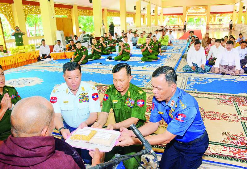 တပ်မတော်(ကြည်း၊ ရေ၊ လေ) မိသားစုများနှင့် စေတနာရှင် ပြည်သူများက စုပေါင်းပါဝင်လှူဒါန်းသည့် ဆွမ်းဆန်တော်၊ ဆီ၊ ဆား၊ ပဲ၊ ဆေးနှင့် ဆွမ်းပဒေသာပင် စိုက်ထူလှူဒါန်းပွဲကို ယနေ့မွန်းလွဲပိုင်းက နေပြည်တော် ပျဉ်းမနားမြို့ မဟာဓမ္မိကာရာမအုန်းတောကျောင်းတိုက်၌ ပြုလုပ်ရာ နေပြည်တော် ဥပ္ပါတသန္တိစေတီတော် ဩဝါဒါစရိယဘဒ္ဒန္တဝိစက္ခဏ အမှူးပြုသော ဆရာတော်၊ သံဃာတော်များကြွရောက်တော်မူကြပြီး ကာကွယ်ရေးဦးစီးချုပ်ရုံးမှ တပ်မတော်အရာရှိကြီးများ၊ အရာရှိ၊ စစ်သည်၊ မိသားစုဝင်များ၊ ဌာနဆိုင်ရာတာဝန်ရှိသူများ၊ စေတနာရှင်အလှူရှင်များ တက်ရောက်ကြသည်။