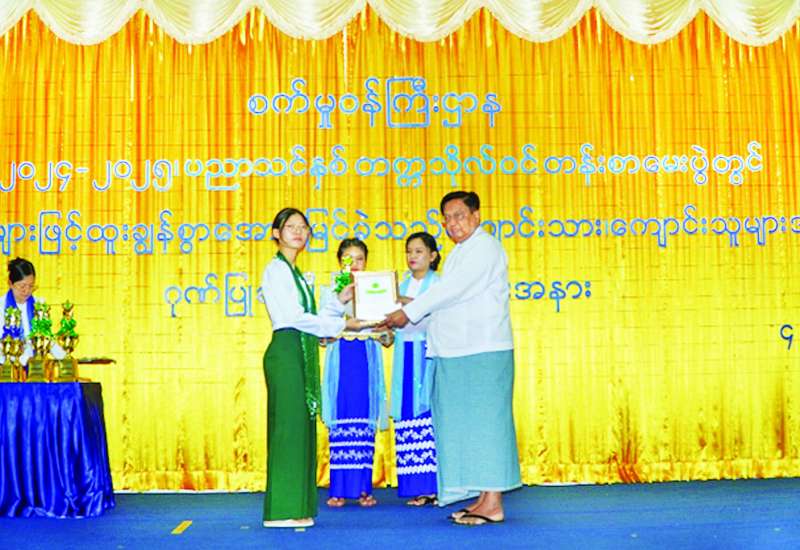 စက်မှုဝန်ကြီးဌာန ပြည်ထောင်စုဝန်ကြီး ဒေါက်တာချာလီသန်းသည် ယနေ့နံနက်ပိုင်းတွင် ၂၀၂၄-၂၀၂၅ ပညာသင်နှစ် တက္ကသိုလ်ဝင်တန်းစာမေးပွဲ ထူးချွန်စွာအောင်မြင်ခဲ့ကြသည့် စက်မှုဝန်ကြီးဌာနမှ ဝန်ထမ်းများ၏ သား၊ သမီးများအား ဂုဏ်ပြုဆုချီးမြှင့်သည့် အခမ်းအနားတက်ရောက်သည်။