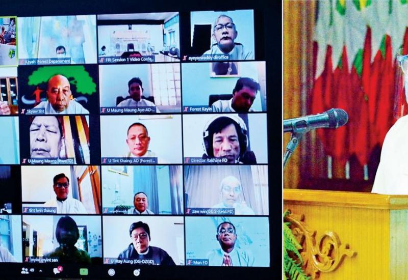 သယံဇာတနှင့် သဘာဝပတ်ဝန်းကျင်ထိန်းသိမ်းရေးဝန်ကြီးဌာန၏ (၃၂)ကြိမ်မြောက် သစ်တော၊ သတ္တုနှင့် ပတ်ဝန်းကျင်ဆိုင်ရာ သုတေသနစာတမ်းဖတ်ပွဲကို ယနေ့ နံနက် ၉ နာရီတွင် နေပြည်တော်ရှိ သစ်တောဦးစီးဌာန အင်ကြင်းခန်းမ၌ ဗီဒီယို ကွန်ဖရင့်စနစ်ဖြင့် ကျင်းပသည်။