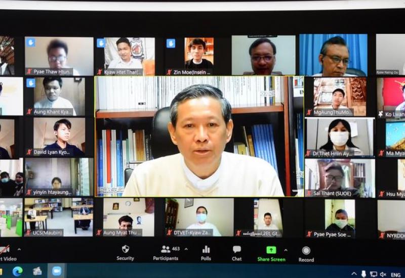 အမျိုးသားပညာရေး မဟာဗျူဟာစီမံကိန်း (၂၀၂၁-၂၀၃၀) ပြုစုရေးအတွက် ကျောင်းသားသမဂ္ဂများ၊ ကျောင်းသားကျောင်းသူများနှင့် ညှိနှိုင်းအစည်းအဝေးကို ယနေ့နံနက် ၉ နာရီတွင် နေပြည်တော်ရှိ ပညာရေးဝန်ကြီးဌာန ရုံးအမှတ် (၁၃) မှ ဗီဒီယိုကွန်ဖရင့်စနစ်ဖြင့် ကျင်းပသည်။
