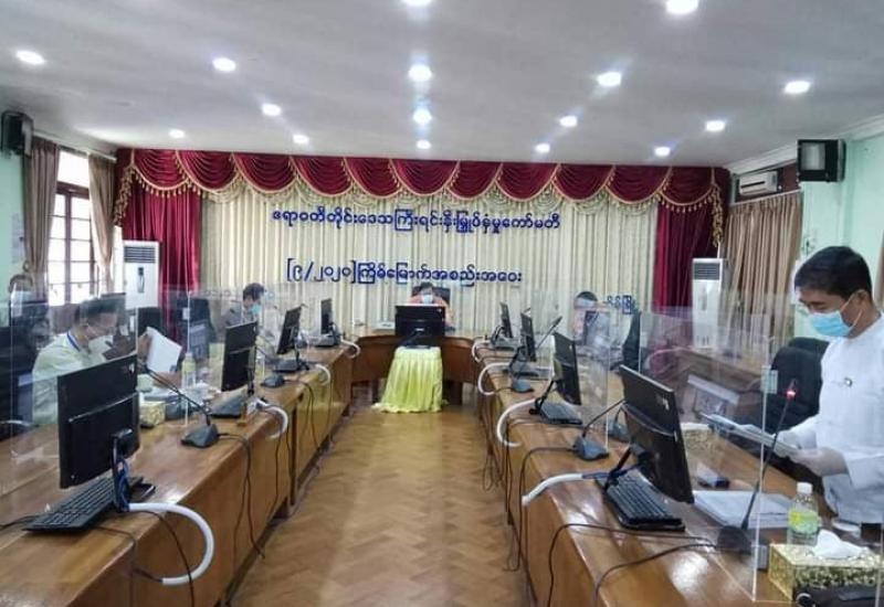 ဧရာဝတီတိုင်းဒေသကြီးအစိုးရအဖွဲ့ရုံး၊ အစည်းအဝေးခန်းမ၌ ၉/၂၀၂၀ ကြိမ်မြောက် ARIC အစည်းအဝေး အား ယနေ့ နံနက် ၁၀ နာရီအချိန်က Online မှတစ်ဆင့် Zoom Application ဖြင့်ကျင်းပရာ အစည်းအဝေး သို့ ကော်မတီဥက္ကဋ္ဌ၊ တိုင်းဒေသကြီးအစိုးရအဖွဲ့ ဝန်ကြီးချုပ်ဦးလှမိုးအောင်နှင့် ကော်မတီဝင်များ ဖြစ်ကြသည့် တိုင်းဒေသကြီးအစိုးရအဖွဲ့ဝင် ဝန်ကြီးများ၊ တိုင်းဒေသကြီးအစိုးရအဖွဲ့ အတွင်းရေးမှူးနှင့် ကော်မတီအတွင်းရေးမှူး၊ တိုင်းဒေသကြီးရင်းနှီးမြှုပ်နှံမှုနှင့် ကုမ္ပဏီများမှတ်ပုံတင်ရေးဦးစီးဌာနမှ ညွှန်ကြားရေးမှူးတို့ တက် ရောက်ခဲ့ကြပါသည်။