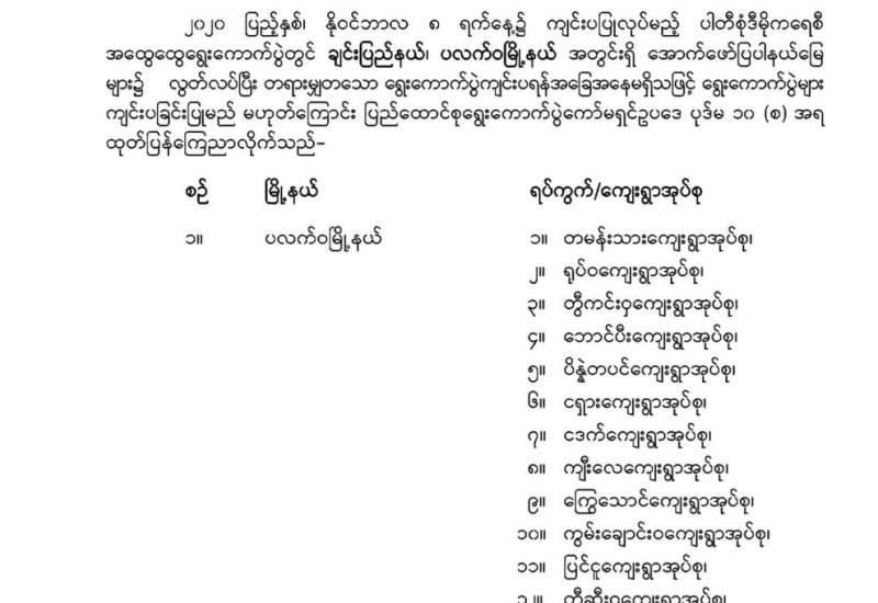 ရွေးကောက်ပွဲများ ကျင်းပခြင်းမပြုမည့် နယ်မြေများစာရင်း ထုတ်ပြန်ကြေညာခြင်း