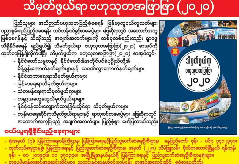 ပြန်ကြားရေးနှင့် ပြည်သူ့ဆက်ဆံရေးဦးစီးဌာနက စီစဉ်ထုတ်ဝေသည့် “သိမှတ်ဖွယ်ရာ ဗဟုသုတအဖြာဖြာ ၂၀၂၀” စာအုပ်သည် ပြည်သူများ အသိဉာဏ်ဗဟုသုတပြည့်စုံစေရန်၊ ရာထူးဝင်စာမေးပွဲများ၊ ပြန်တမ်းဝင်ခွင့်စာမေးပွဲများ ဖြေဆိုရာတွင် အထောက်အကူဖြစ်စေရန်နှင့်