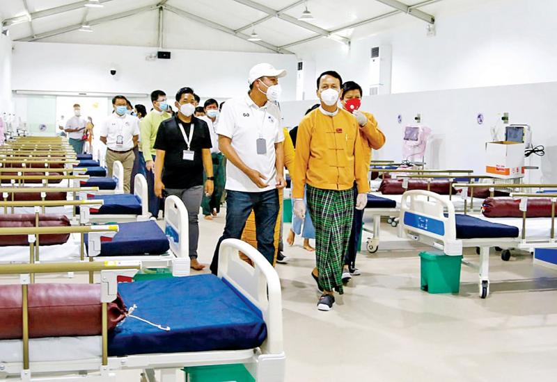 ရန်ကုန်တိုင်းဒေသကြီး ဝန်ကြီးချုပ် ဦးဖြိုးမင်းသိန်းသည် ကိုဗစ်-၁၉ ရောဂါကုသရေးဌာန ဧရာဝတီစင်တာ ခုတင် ၁၀၀၀ တွင် အသစ်ဆောက် လုပ်ပြီးစီးသော ခုတင် ၅၀ ဆံ့ ICU/HDU တိုးချဲ့ဆောင်သို့ ယနေ့နံနက် ပိုင်းက လာရောက်ကြည့်ရှုအားပေး သည်။