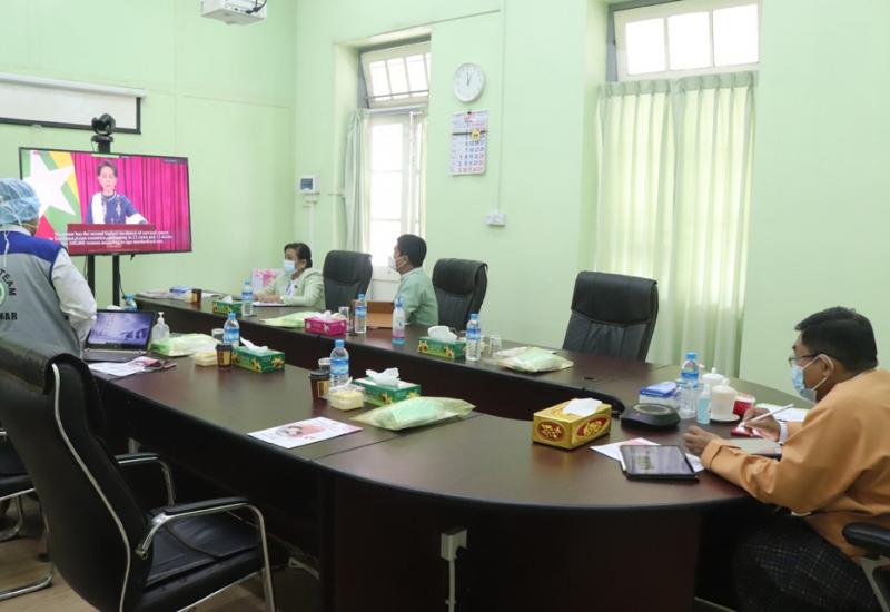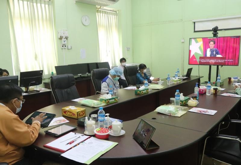 နေပြည်တော်၊ MICC(2) ခန်းမ၌ ယမန်နေ့မွန်းလွဲ(၁)နာရီအချိန်က ကျင်းပပြုလုပ်သည့် “ပုံမှန်ကာကွယ်ဆေးထိုး အစီအစဉ်တွင် အိတ်ခ်ျပီဗီ (HPV) ကာကွယ်ဆေးကို စတင်ထည့်သွင်းထိုးနှံခြင်း ဗဟိုအဆင့် ဖွင့်ပွဲအခမ်းအနား" သို့ Online Meeting System ဖြင့် ဝန်ကြီးချုပ် ဦးဝင်းသိန်း တက်ရောက်ခဲ့သည်။