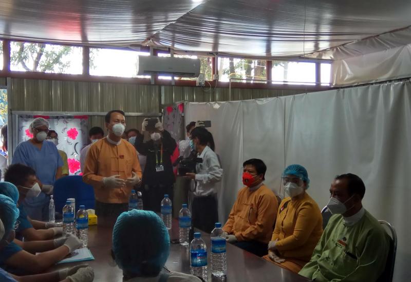 ရန်ကုန်တိုင်းဒေသကြီး၊ ဗိုလ်တထောင်မြို့နယ်အမှတ်(၃)ရပ်ကွက်၊ ကုန်သည်လမ်းနှင့် ဗိုလ်တထောင်ဈေး လမ်းထောင့်ရှိ Times city center ကိုဗစ်-၁၉ရောဂါကုသရေး ဌာနသို့ ရန်ကုန်တိုင်းဝန်ကြီးချုပ် ဦးဖြိုးမင်းသိန်းနှင့် တိုင်းဒေသကြီးအစိုးရအဖွဲ့ဝင်များသည် ယနေ့နံနက် (၁၀:၁၀)အချိန်က သွားရောက်ကာ တာဝန်ထမ်းဆောင်နေသော စေတနာ့ ဝန်ထမ်း များအား အားပေးစကားပြောကြားခဲ့သည်။