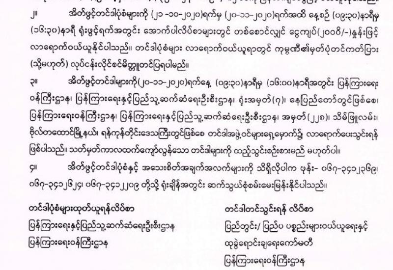 ၁။ ပြည်ထောင်စုရွေးကောက်ပွဲကော်မရှင်သည် ကိုဗစ်-၁၉ ရောဂါနှင့် စပ်လျဉ်းသည့် ကျန်းမာရေးဆိုင်ရာ ညွှန်ကြားချက်များအရ မိမိမဲဆန္ဒနယ်သို့ ပြန်လည်ဆန္ဒမဲပေးခြင်း မပြုနိုင်သည့် မဲဆန္ဒနယ်ပြင်ပရောက် မဲဆန္ဒရှင်များ ဆန္ဒမဲပေးပိုင်ခွင့်မဆုံးရှုံးစေရေးအတွက် မိမိတို့ရောက်ရှိနေသော မြို့နယ်ကော်မရှင်အဖွဲ့ခွဲများသို့ ဆက်သွယ်၍ ကြိုတင်ဆန္ဒမဲ လက်မှတ်ဖြင့် ဆန္ဒမဲပေးနိုင်ရန် ပုံစံ(၁၅)များ ရယူလျှောက်ထားနိုင်ကြောင်းနှင့် အထူးကိစ္စ တစ်ရပ်အဖြစ် ဆောင်ရွက်ပေးသွားမည်ဖြစ်ကြောင်း ၂၀၂၀ ပြည့်နှစ် အောက်တိုဘာလ ၈ ရက် နေ့တွင် အသိပေးကြေညာချက်ထုတ်ပြန်ပြီး ဖြစ်ပါသည်။