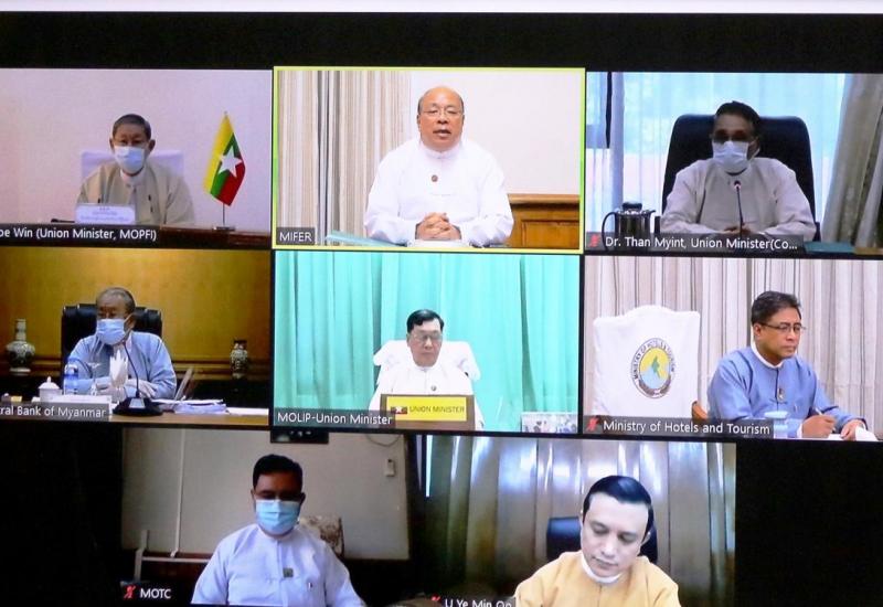 ကိုဗစ်-၁၉ ကြောင့် ဖြစ်ပေါ်လာနိုင်သည့် စီးပွားရေး သက်ရောက်မှုများအပေါ် ကုစားရေး လုပ်ငန်းကော်မတီ၏ အစည်းအဝေးအမှတ်စဉ် (၁၀/၂၀၂၀)ကို ယနေ့မွန်းလွဲ ၂ နာရီတွင် ရင်းနှီးမြှုပ်နှံမှုနှင့် နိုင်ငံခြားစီးပွား ဆက်သွယ်ရေး ဝန်ကြီးဌာန ရုံးအမှတ်(၁)တွင် ဗွီဒီယိုကွန်ဖရင့် စနစ်ဖြင့် ကျင်းပသည်။