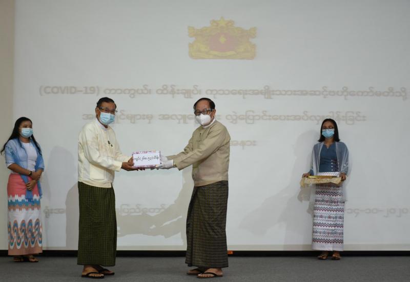 Coronavirus Disease 2019 (COVID-19) ကာကွယ်၊ ထိန်းချုပ်၊ ကုသရေး အမျိုးသားအဆင့် ဗဟိုကော်မတီသို့ အလှူငွေပေးအပ်ပွဲကို ယနေ့ မွန်းလွဲပိုင်းတွင် နေပြည်တော်ရှိ ကျန်းမာရေးနှင့် အားကစား ဝန်ကြီးဌာန၌ ကျင်းပသည်။