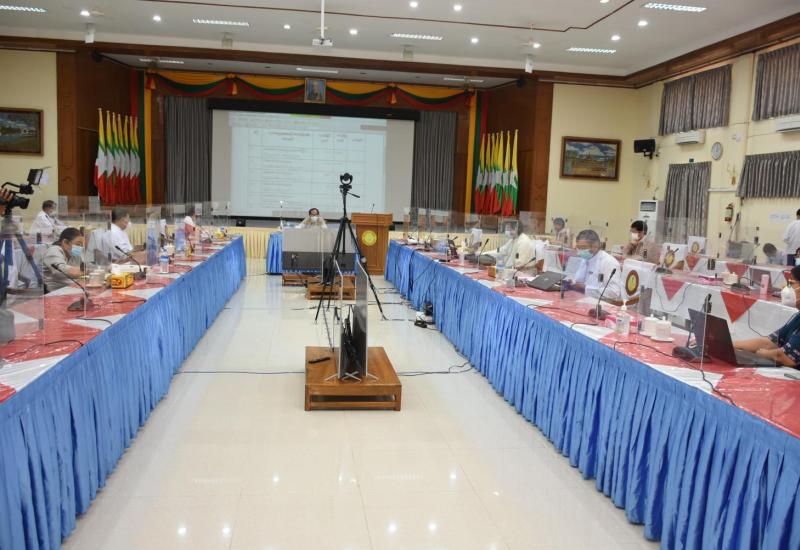 ရန်ကုန်တိုင်းဒေသကြီးတွင် လက်ရှိဆောင်ရွက်နေသည့် ကိုဗစ်-၁၉ ကာကွယ်၊ ထိန်းချုပ်၊ ကုသရေး လုပ်ငန်းများ ဆန်းစစ်သုံးသပ်မှု အစည်းအဝေးကို ယနေ့မွန်းလွဲပိုင်းတွင် Videoconferencing စနစ်ဖြင့် ကျင်းပသည်။