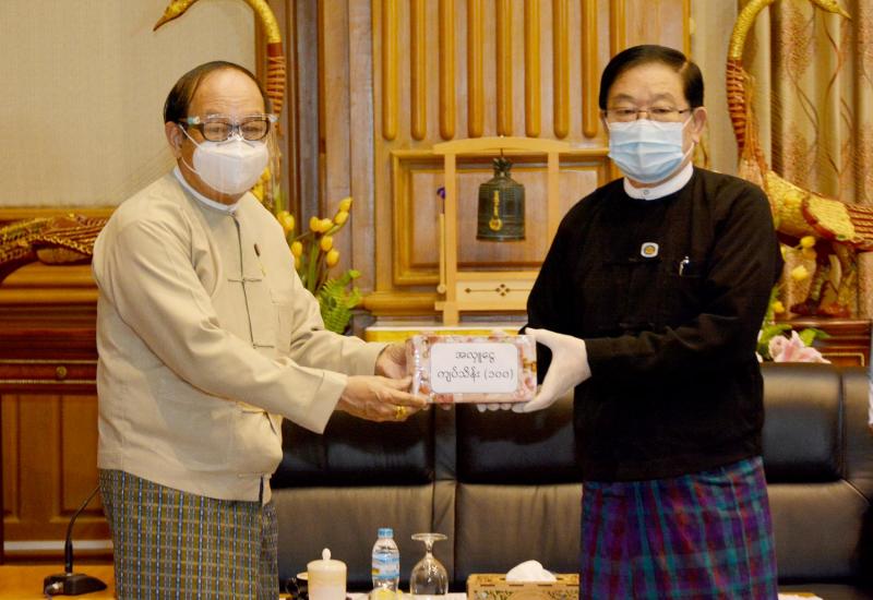ပြည်သူ့လွှတ်တော်ဥက္ကဋ္ဌ ဦးတီခွန်မြတ်သည် Coronavirus Disease 2019 (COVID-19) ကာကွယ်၊ ထိန်းချုပ်၊ ကုသရေး အမျိုးသားအဆင့် ဗဟိုကော်မတီသို့ အလှူငွေ ပေးအပ် လှူဒါန်းပွဲ အခမ်းအနားကို ယနေ့မွန်းလွဲ ၁ နာရီတွင် နေပြည်တော်ရှိ လွှတ်တော် အဆောက်အအုံ၊ ပြည်သူ့လွှတ်တော်ဧည့်ခန်းမ၌ ကျင်းပသည်။