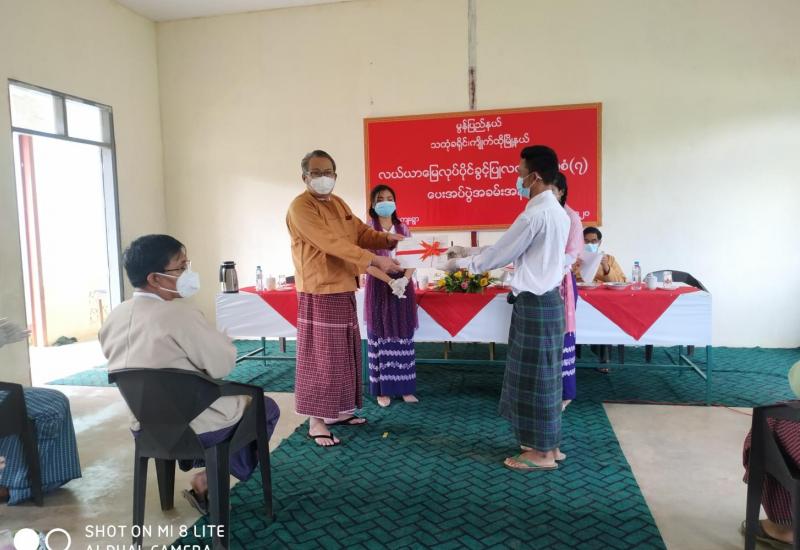 မွန်ပြည်နယ်၊ သထုံခရိုင်၊ ကျိုက်ထိုမြို့နယ် ဝင်းကံကျေးရွာအုပ်စုအတွင်းရှိ ဒေသခံတောင်သူများ အား လယ်ယာမြေလုပ်ပိုင်ခွင့်ပြု လက်မှတ်ပုံစံ(၇)ပေးအပ်ပွဲ အခမ်းအနားကို ယမန်နေ့ နံနက် ၉နာရီခွဲခန့်က ကျောက်ရေတွင်းကျေးရွာ အခြေခံပညာမူလတန်းကျောင်း၌ပြုလုပ်ခဲ့သည်။