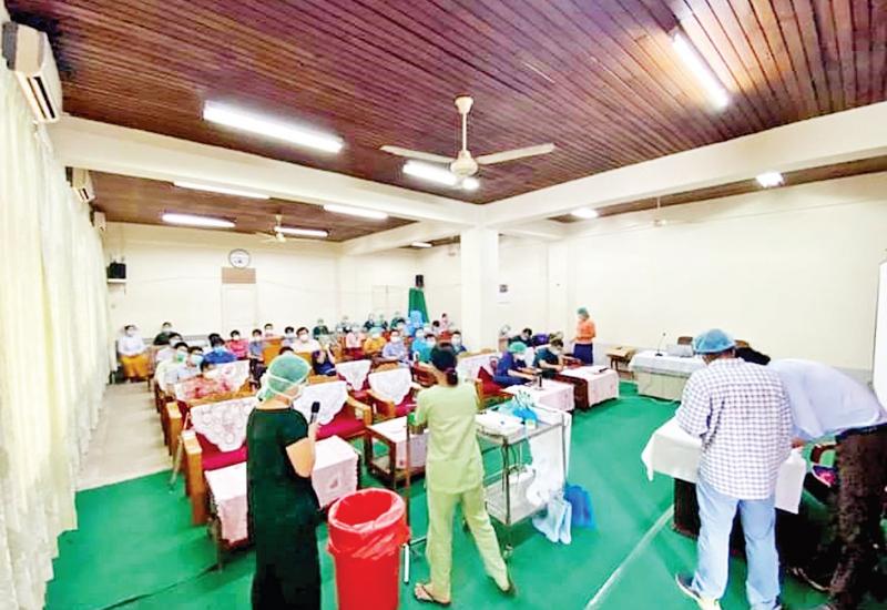 အင်းစိန်ပြည်သူ့ဆေးရုံကြီး၌ ဆေးပညာ ဌာနမှ ပါမောက္ခ ဒေါက်တာဒေါ်မာမာကြည် ဦးဆောင်မှုဖြင့် ကိုဗစ်-၁၉ သံသယလူနာများကို နှာခေါင်း၊ အာခေါင်တို့ဖတ်ယူခြင်း သင်တန်းကို ယနေ့ နံနက်ပိုင်းတွင် ရန်ကုန် တိုင်းဒေသကြီး ဖျားနာကုအခမဲ့ဆေးခန်းများ (Fever Clinics)မှ တာဝန်ခံဆရာဝန်များနှင့် စေတနာ့ ဝန်ထမ်း ဆရာဝန်များအား သင်တန်းပို့ချပေးခဲ့ကြောင်း သိရသည်။