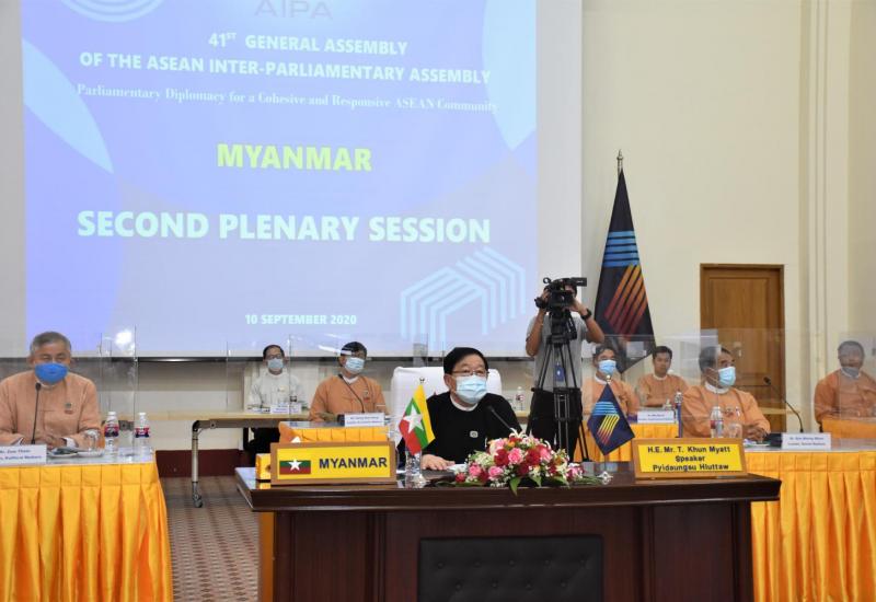 ပြည်ထောင်စုလွှတ်တော်နာယက၊ ပြည်သူ့လွှတ်တော်ဥက္ကဋ္ဌ ဦးတီခွန်မြတ် ဦးဆောင်သော မြန်မာလွှတ်တော် ကိုယ်စားလှယ်အဖွဲ့သည် ယနေ့နံနက်ပိုင်းတွင် Video Conferencing ဖြင့်ကျင်းပသည့် (၄၁) ကြိမ်မြောက် အာဆီယံပါလီမန်များ အထွေထွေညီလာခံ ဒုတိယစုံညီ အစည်းအဝေးနှင့် ပိတ်ပွဲအခမ်းအနားသို့ တက်ရောက်ကြသည်။