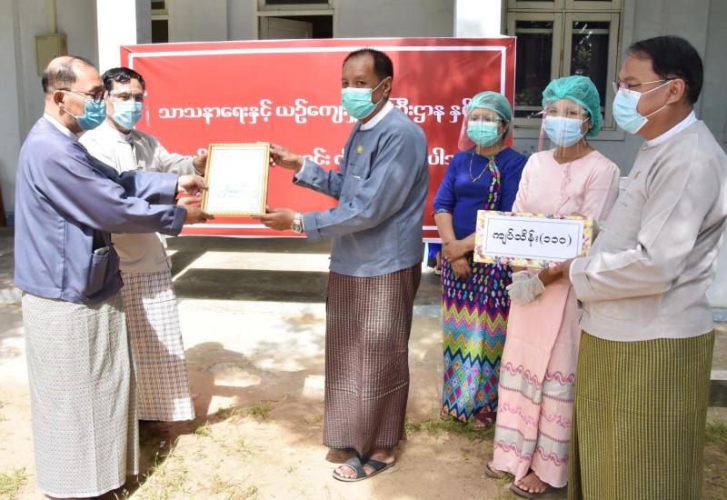 ပြည်ထောင်စုနယ်မြေ၊ နေပြည်တော်အတွင်း Quarantine ဝင်ရောက်လျက်ရှိသော အစိုးရဝန်ထမ်းများနှင့် ကျန်းမာရေး ကိစ္စရပ်များနှင့် စပ်လျဉ်း၍ တာဝန်ယူ စောင့်ရှောက်မှုပေးနေသည့် ကျန်းမာရေးနှင့် အားကစားဝန်ကြီးဌာနမှ ဆရာဝန်များ၊ သူနာပြုများနှင့် ကျန်းမာရေး ဝန်ထမ်းများအတွက် သာသနာရေးနှင့် ယဉ်ကျေးမှုဝန်ကြီးဌာနနှင့် လေးကျွန်းသူဖောင်ဒေးရှင်းတို့မှ အလှူငွေများ ပေးအပ်လှူဒါန်းပွဲကို ယနေ့နံနက် ၁၀ နာရီတွင် နေပြည်တော်စည်ပင် ဧည့်ရိပ်သာရှိ အဆောင် ၅၆ တွင် ကျင်းပသည်။