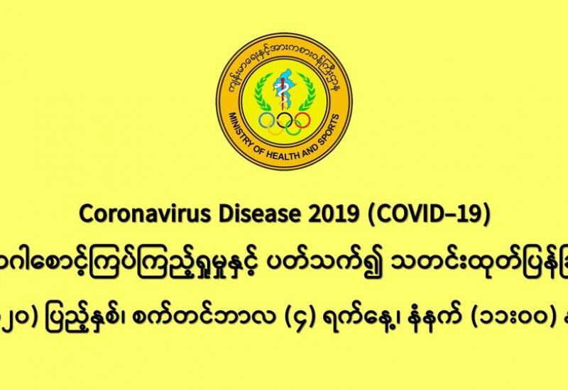 ၁။ (၃-၉-၂၀၂၀) ရက်နေ့အတွက် COVID-19 ရောဂါ ဓာတ်ခွဲစစ်ဆေးရာတွင် -