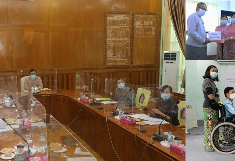 ကိုဗစ်-၁၉ ကာလအတွင်း ထိခိုက်လွယ်အခြေအနေတွင်ရှိသော အမျိုးသမီးများအား ကာ ကွယ်စောင့်ရှောက်ရေး လုပ်ငန်း စီမံချက်အရ မြန်မာနိုင်ငံအမျိုးသမီးများနှင့် ကလေးသူငယ်များ ဘဝ မြှင့်တင်ရေးအသင်းက စာရင်းပေးပို့လာသည့် ရပ်တည်ရန် ခက်ခဲသည့် အမျိုးသမီးများနှင့် “မသန်စွမ်း သူများအတွက် ကိုဗစ်-၁၉ အရေးပေါ်တုံ့ပြန်ရေးပူးပေါင်းကော်မတီ” က စာရင်းပေးပို့ သည့် ထောက်ပံ့ မှုအထူးလိုအပ်သော မသန်စွမ်းအမျိုးသမီးများအတွက် ငွေကြေး လွှဲပြောင်းထောက်ပံ့ခြင်းကို ယနေ့ နံနက်ပိုင်း တွင် လူမှုဝန်ထမ်း၊ကယ်ဆယ်ရေးနှင့်ပြန်လည်နေရာချထားရေးဝန်ကြီးရုံး၌ အွန်လိုင်းစနစ် ဖြင့်ကျင်းပသည်။