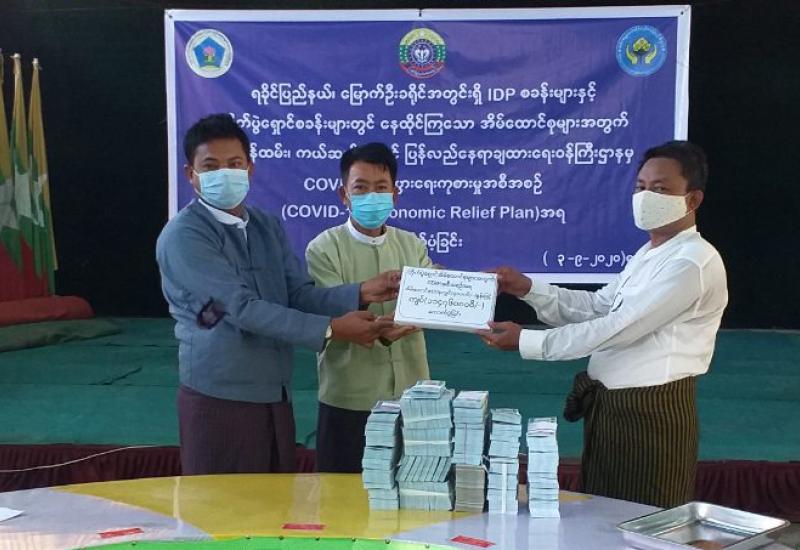 ကိုဗစ်-၁၉ စီးပွားရေးကုစားမှုအစီအစဉ် (COVID-19 Economic Relief Plan- CERP) အရ ရခိုင်ပြည်နယ်အတွင်းရှိ IDP/ တိုက်ပွဲရှောင်စခန်းများမှ နေရပ်စွန့်ခွာအိမ်ထောင်စုများအား စား သောက်ကုန်(၅)မျိုးဝယ်ယူရန် အိမ်ထောင်စု(၁)စု လျှင် (၄၀,၀၀ဝိ/-)နှုန်းဖြင့် ထောက်ပံ့နိုင်ရေးအတွက် လူမှုဝန်ထမ်း၊ ကယ်ဆယ်ရေးနှင့်ပြန်လည်နေရာချထားရေး ဝန်ကြီးဌာန၊ ပြည်ထောင်စုဝန်ကြီးမှ ရခိုင်ပြည်နယ်ဝန်ကြီးချုပ် ဦးဆောင်သည့် ရခိုင်ပြည်နယ်အစိုးရအဖွဲ့သို့ ထောက်ပံ့ငွေ လွှဲပြောင်း ပေးအပ်ပွဲအခမ်းအနားအား ဩဂုတ် ၂၁ ရက်တွင် Virtual Meeting အဖြစ် ကျင်းပခဲ့ပြီး ဖြစ်သည်။