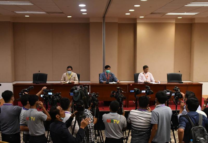 နိုင်ငံတော်အတိုင်ပင်ခံရုံးဝန်ကြီးဌာန ညွှန်ကြားရေးမှူးချုပ် ဦးဇော်ဌေး၊ မွန်ပြည် သစ်ပါတီ (NMSP) ဗဟိုကော်မတီဝင် နိုင်အောင်မငေးနှင့် ရှမ်းတိုင်းရင်းသားများ ဒီမိုကရေစီအဖွဲ့ချုပ်ပါတီ(SNLD)မှ တွဲဖက်အထွေထွေအတွင်းရေးမှူး စိုင်းကျော်ညွန့် တို့သည် ယနေ့ ညနေပိုင်းတွင် နေပြည်တော်ရှိ မြန်မာအပြည်ပြည်ဆိုင်ရာ ကွန်ဗင်းရှင်းဗဟိုဌာန-၁ ၌ သတင်းမီဒီယာများနှင့်တွေ့ဆုံ၍ (၁၉) ကြိမ်မြောက် ပြည်ထောင်စု ငြိမ်းချမ်းရေးဆွေးနွေးမှု ပူးတွဲကော်မတီ- UPDJC အစည်းအဝေး ကျင်းပပြီးစီးမှု အခြေအနေများကို ရှင်းလင်း ပြောကြားသည်။