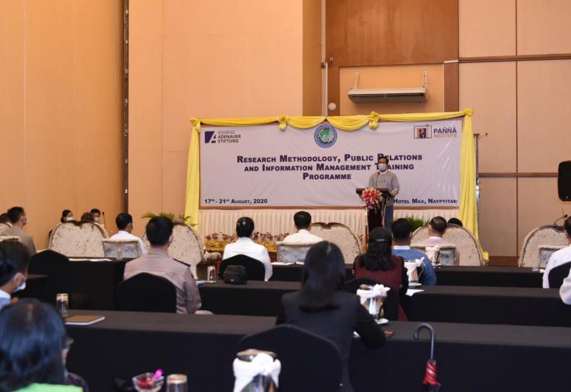 ပဉ္စမအကြိမ် သုတေသန နည်းနာနိဿယ၊ ပြည်သူ့ဆက်ဆံရေးနှင့် သတင်းအချက်အလက် စီမံခန့်ခွဲမှု ဆိုင်ရာ သင်တန်းဖွင့်ပွဲအခမ်းအနားကို ယနေ့နံနက်ပိုင်းတွင် နေပြည်တော်ရှိ မက်စ် ဟိုတယ်၌ ကျင်းပ သည်။